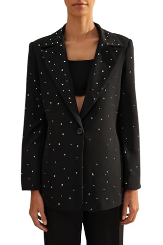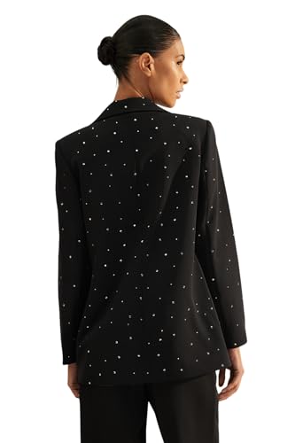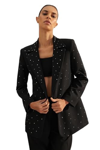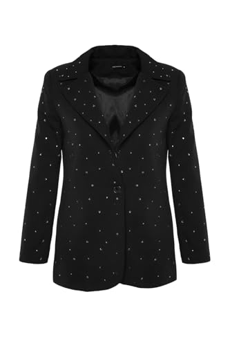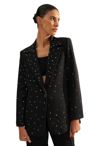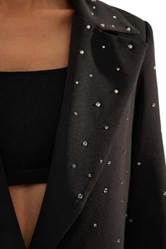 Trendyol - جاكيت بليزر أسود بقصة عادية ونسيج محبوك مبطن وتصميم مرصع بالخرز للنساء TWOAW24BC00078 من تريندول