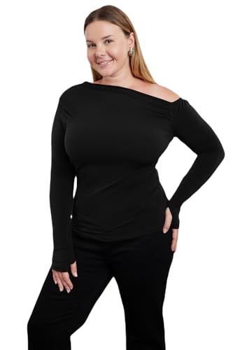 Trendyol - Trendyol Woman Black Sandy Knitted Plus Size Blouse TBBAW25AF00013 Plus Size Blouse