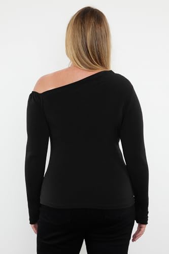 Black Sandy Knitted Plus Size Blouse TBBAW25AF00013
