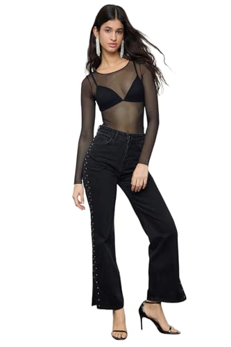 Black Troc Detailed Slit High Waist Wide Leg Jeans TWOSS25JE00015