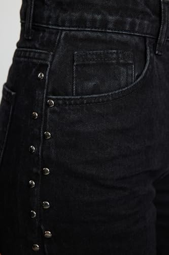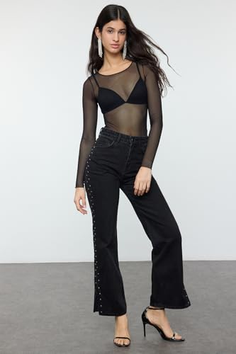Trendyol - Trendyol Woman Black Troc Detailed Slit High Waist Wide Leg Jeans TWOSS25JE00015 Jeans