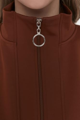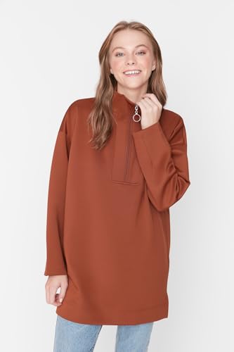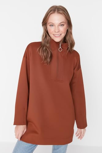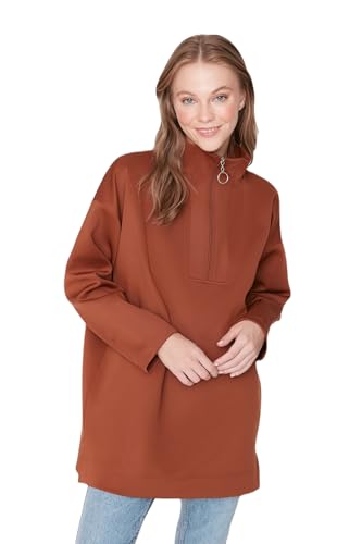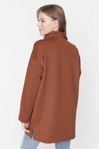 Trendyol - Trendyol Woman Brown Oversize Zipper Detailed Diver/Scuba Knitted Sweatshirt TCTAW23TW00198,Brown M