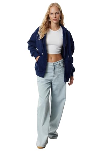 Trendyol - Trendyol Woman Dark Navy Blue Oversize/Relaxed Cut Zippered Thick Inside Fleece Knitted Sweatshirt TWOAW24SW00188 Sweatshirt