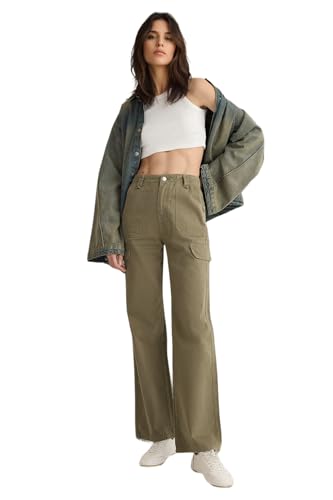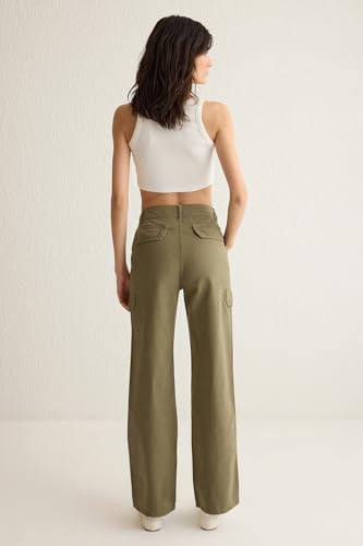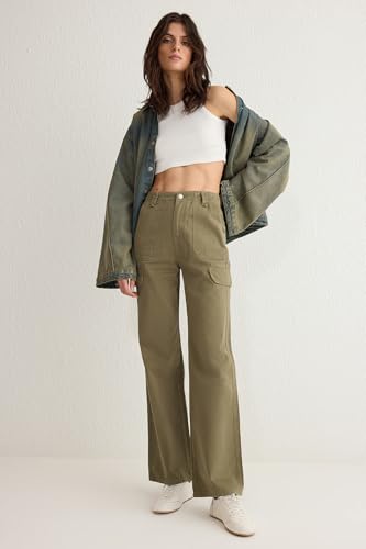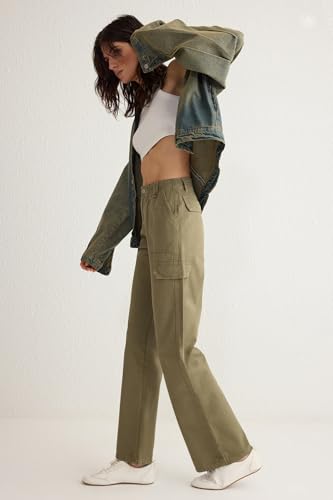 Trendyol - Trendyol Woman Khaki Cargo Pockets High Waist Wide Leg Jeans Twoss25Je00030 Jeans