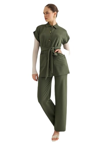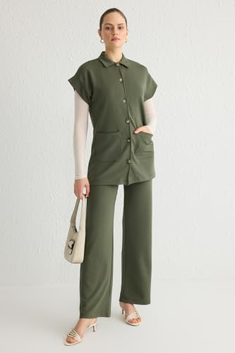 Trendyol - Trendyol Woman Khaki Crepe Knitted Top-Bottom Set TCTSS25US00011 Hijab Top - Bottom Set