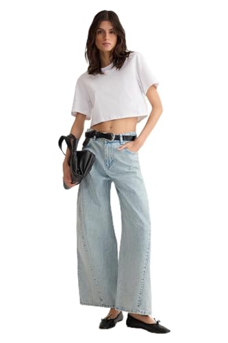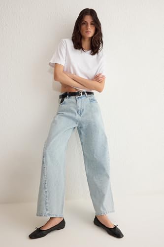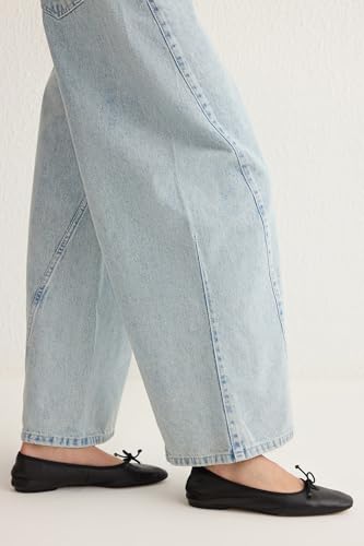 Trendyol - Trendyol Woman Light Blue Stitch Detail Low Waist Barrel Baggy Jeans TWOSS25JE00049 Jeans