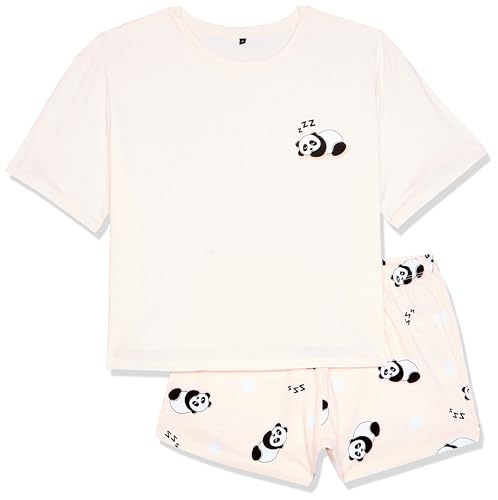 Trendyol - Trendyol Woman Light Pink 100% Cotton Panda Patterned Knitted Pajama Set THMSS25PT00166 Pajama Set