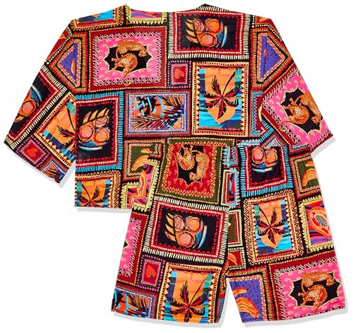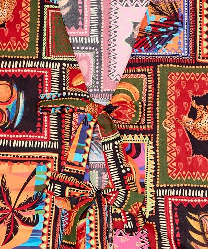 Trendyol - طقم ملابس بحر للنساء متعدد الألوان بنمط استوائي مزين بربطة عنق مقاس كبير من الجزء العلوي والسفلي موديل TBBSS25CP00001، مقاس كبير من ترنديول