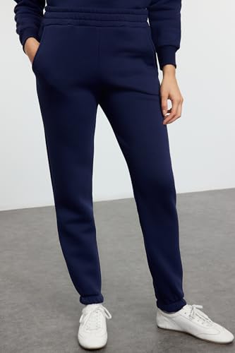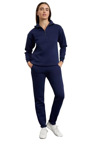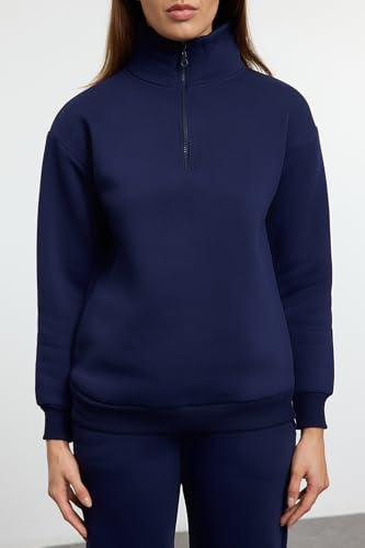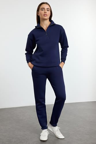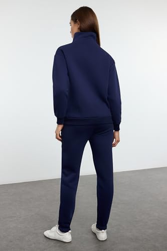 Trendyol - Trendyol Woman Navy Blue Thick Polar Fleece Zippered Stand Collar Jogger Knitted Tracksuit TWOSS25EM00000 Tracksuit Set