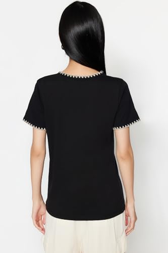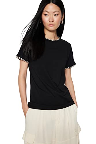 Trendyol - ترنديول تي شيرت بيسيك محبوك برقبة دائرية ضيقة للنساء مصنوع من القطن بنسبة 100% مع تفاصيل خياطة متباينة TWOSS19AD0085 (عبوة من قطعة واحدة)
