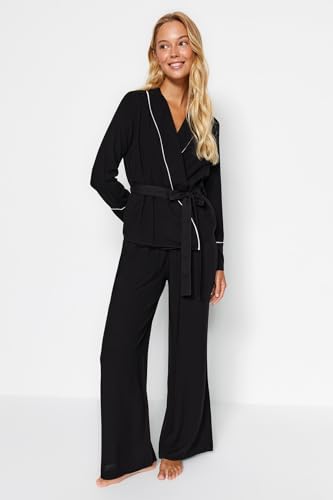 Trendyol - Trendyol Women Belted Piping Detailed Double Breasted Viscose Maternity Woven Pajama Set THMAW22PT1109 Pajama Set