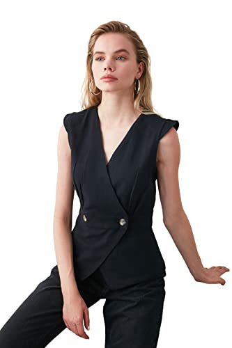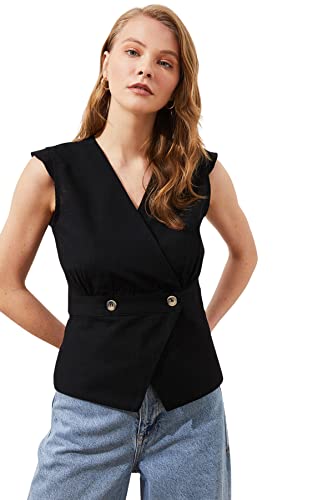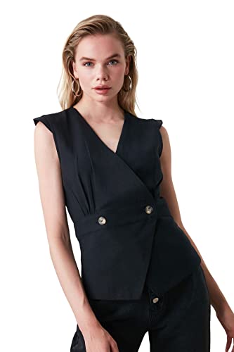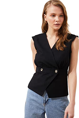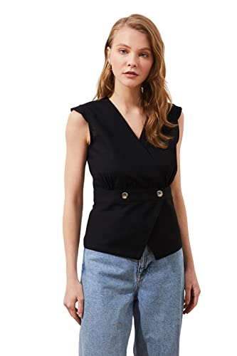 Trendyol - Trendyol Women Black Bone Button Detailed Double Breasted Woven Blouse TWOSS20BZ0707 Blouse
