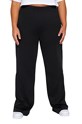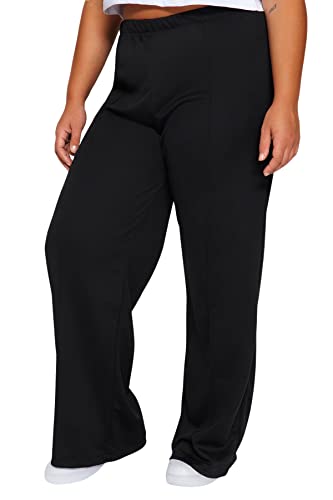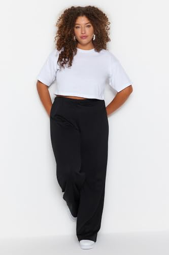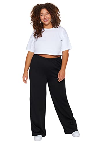 Trendyol - Trendyol Women Black Crepe High Waist Ribbed Knitted Trousers TBBSS23AR00021 Plus Size Pants (pack of 1)