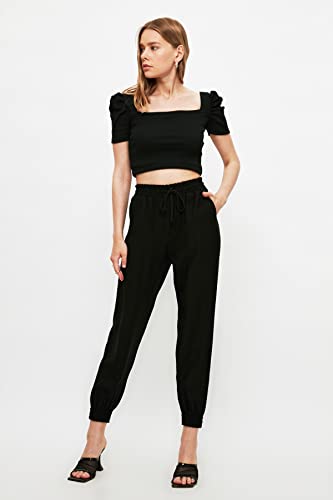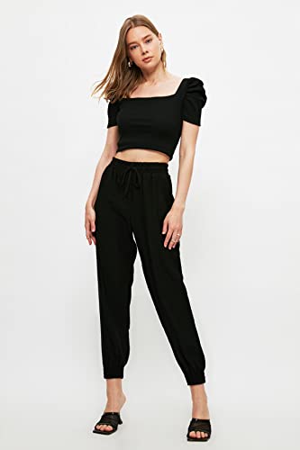 Trendyol - Trendyol Women Black Elastic Waist Jogger Woven Trousers TWOSS20PL0129 Trousers