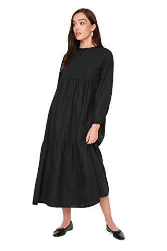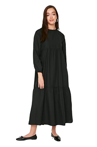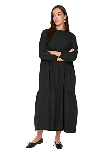 Trendyol - Trendyol Women Black Gathered Detailed Cotton Wide Fit Woven Dress TCTSS21EL3406 Hijab Dress (pack of 1)
