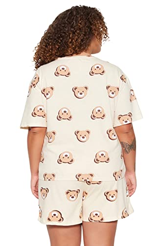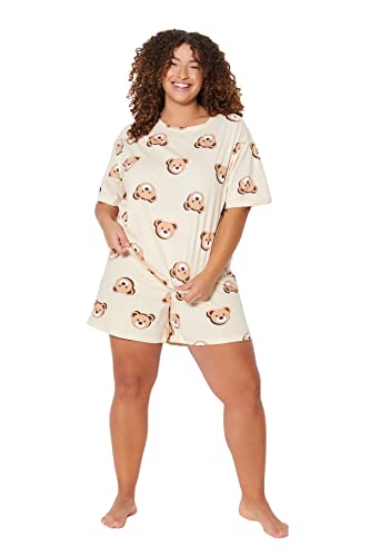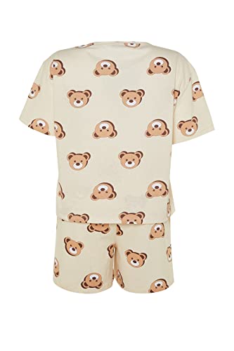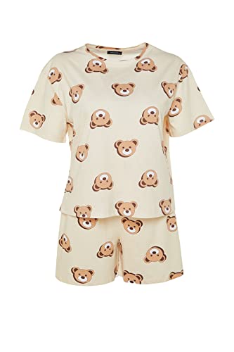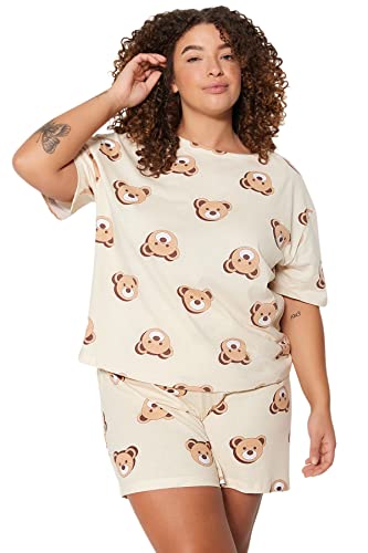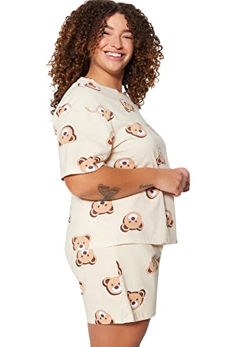 Trendyol - Trendyol Women Ecru Teddy Bear Printed Cotton Knitted Pajamas Set TBBSS23AI00022 Plus Size Pajama Set (pack of 1)