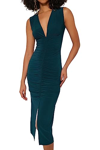Trendyol - Trendyol Women Fitted Ruffle Detailed Midi Stretchy Knitted Pencil Dress TWOSS23EL00751 Dress (pack of 1)