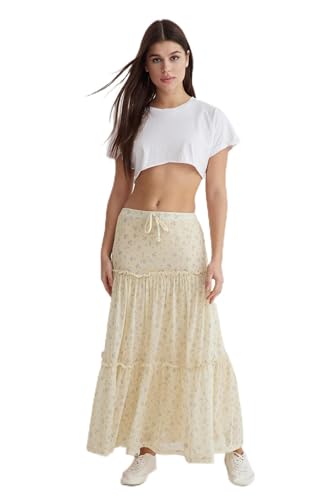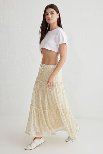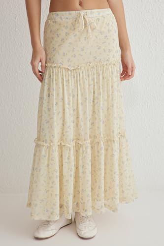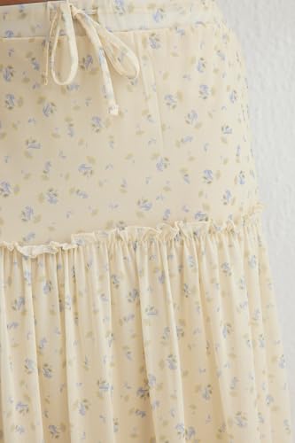 Trendyol - Trendyol Women Light Yellow Tulle Floral Printed Gathered/Draped Detail Flexible Skirt TWOSS25ET00064 Skirt