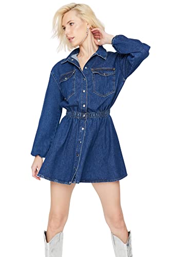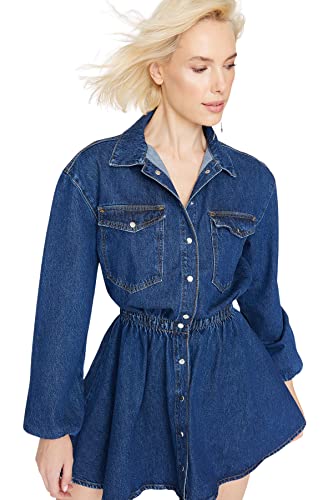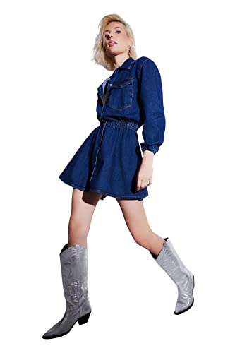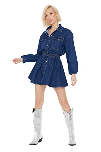 Trendyol - Trendyol Women Navy Blue A-Cut Elastic Waist Denim Short Stylish Dress TPRAW23EL00420 Dress