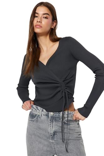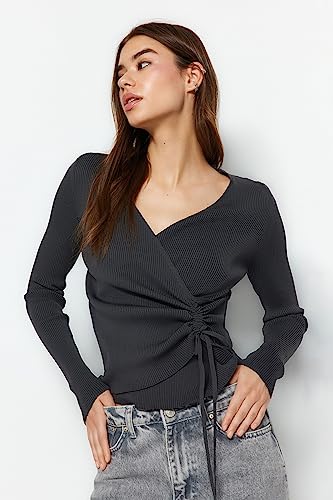 Trendyol - Trendyol Womens Anthracite Knitwear Sweater - Double Breasted and Gather Detailed TWOAW23KZ00828 Sweater (pack of 1)