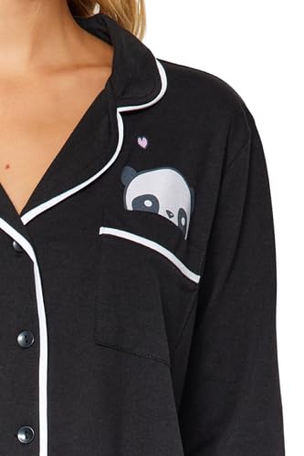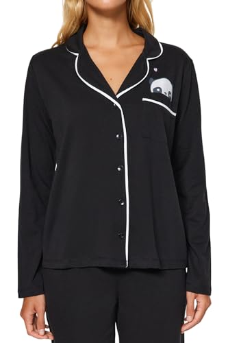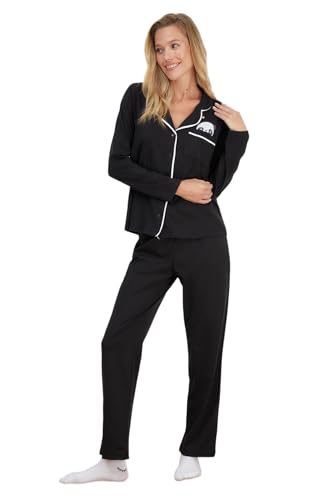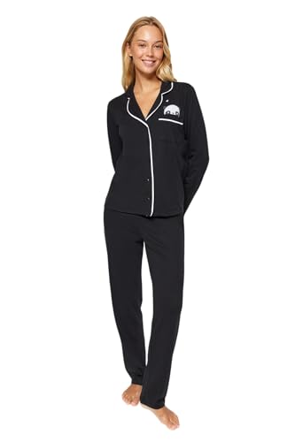 Trendyol - Trendyol Womens Black Cotton Panda Printed Shirt-Pants Knitted Pajama Set THMAW21PT0245 Pajama Set (pack of 1)