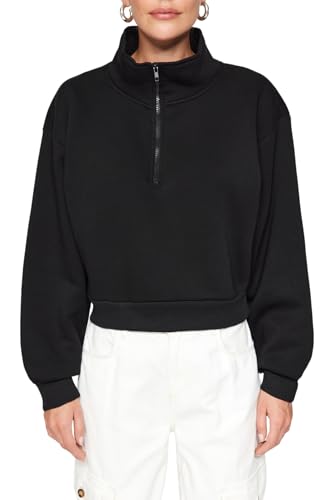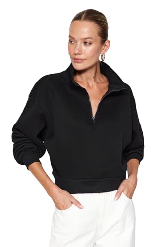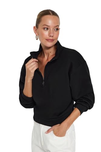 Trendyol - ترنديول سويت شيرت بيسيك محبوك بقصة مريحة وقبة قائمة وسحاب من الصوف السميك للنساء TWOAW24SW00221 (عبوة من قطعة واحدة)