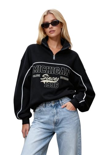 Trendyol - Trendyol Womens Black Zippered Printed Oversize/Wide Fit Thick Fleece Inside Knitted Sweatshirt TWOAW24SW00184 Sweatshirt (pack of 1)