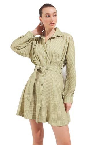 Trendyol - ترنديول فستان قصير منسوج قصير بحزام للنساء بلون اخضر زيتي Twoaw25el00154 (عبوة من قطعة واحدة)