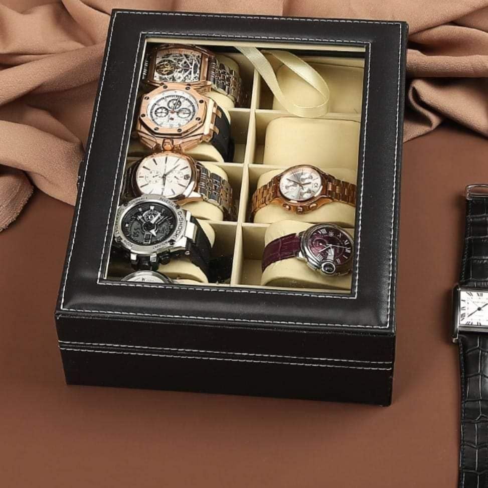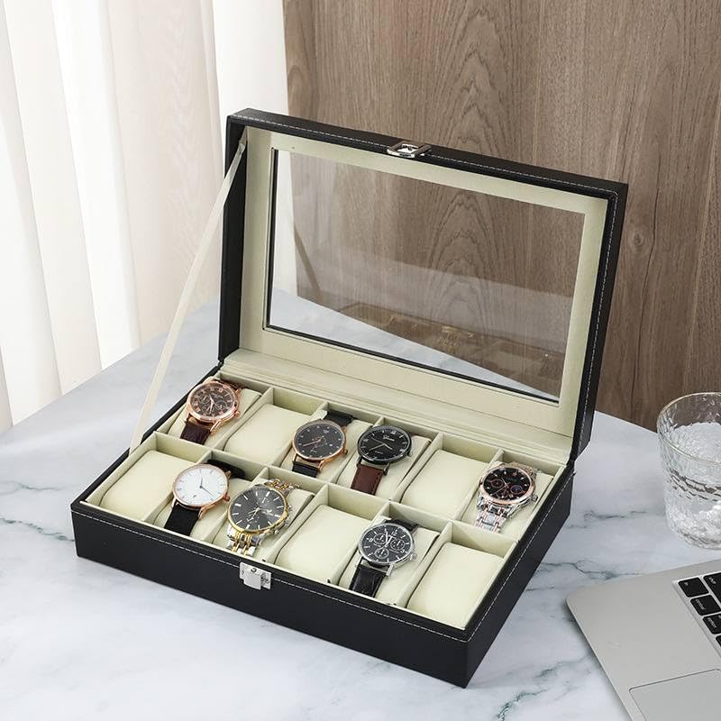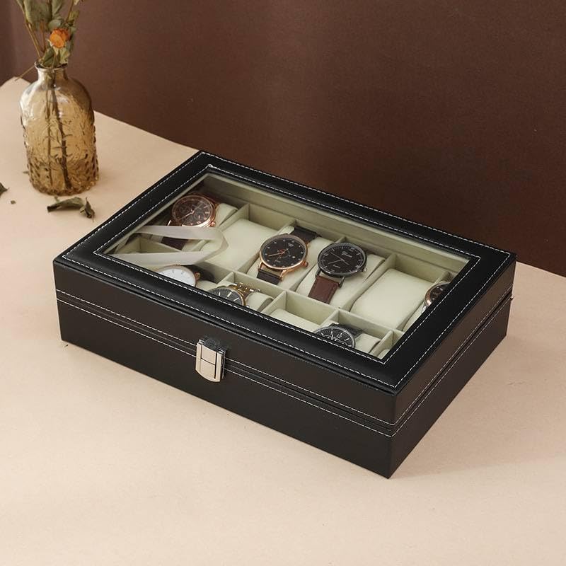 Generic - TRUST.STORE Luxury Leather Art Finish Jewelry Watch Organizer Box with Elegant Glass Display Cover by TRUST.STORE to Ensure Beauty and Order
