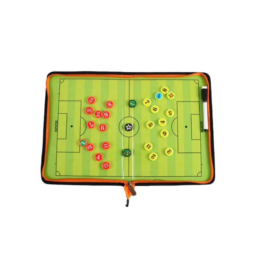 - ⚽ Superior Material: PU leather cover Magnetic pitch Write and wipe, High quality stylish durable tactics board, overall a good piece of equipment for any coach.