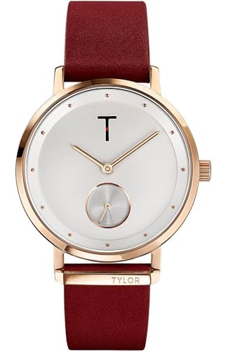 Tylor - ساعة هولا بسوار جلدي للنساء من تايلور TLAJ003، مقاس 34 ملم، بني واحمر، تناظري