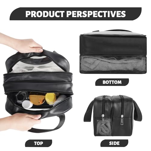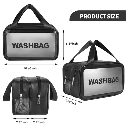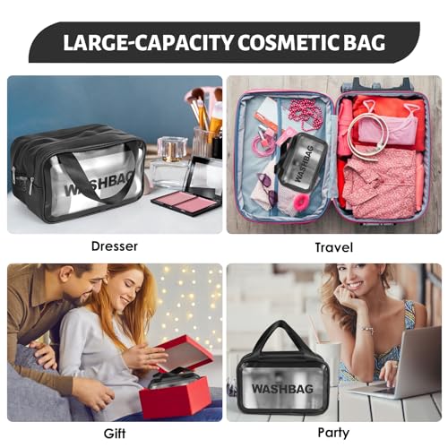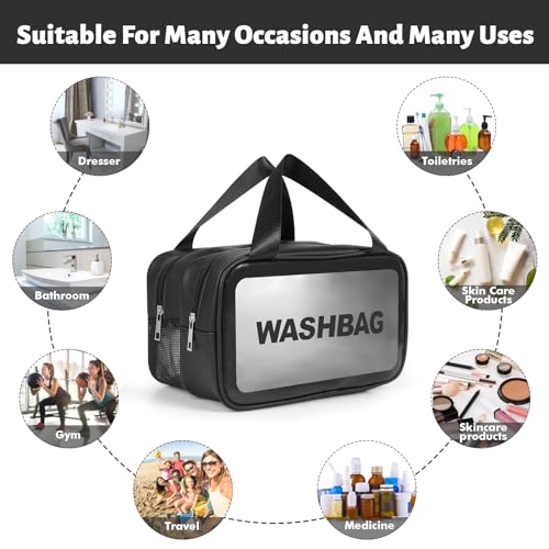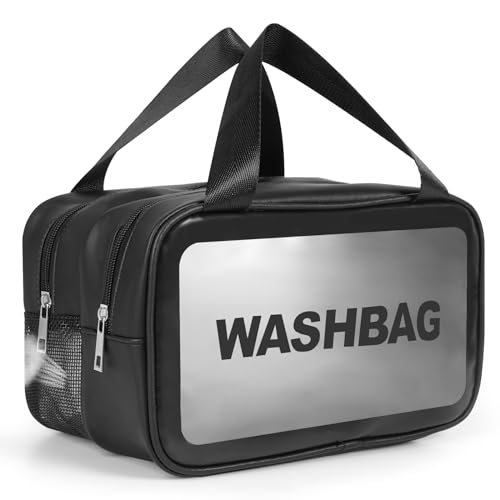 TYUTOSEG - شنطة سفر لادوات الزينة للنساء والرجال من تيوتوسيج، شنطة سفر شفافة مقاومة للماء، شنطة سفر للعناية الشخصية مع مقبض عملي لتنظيم الاكسسوارات (اسود)، قماش بولي فينيل كلورايد
