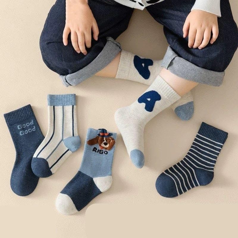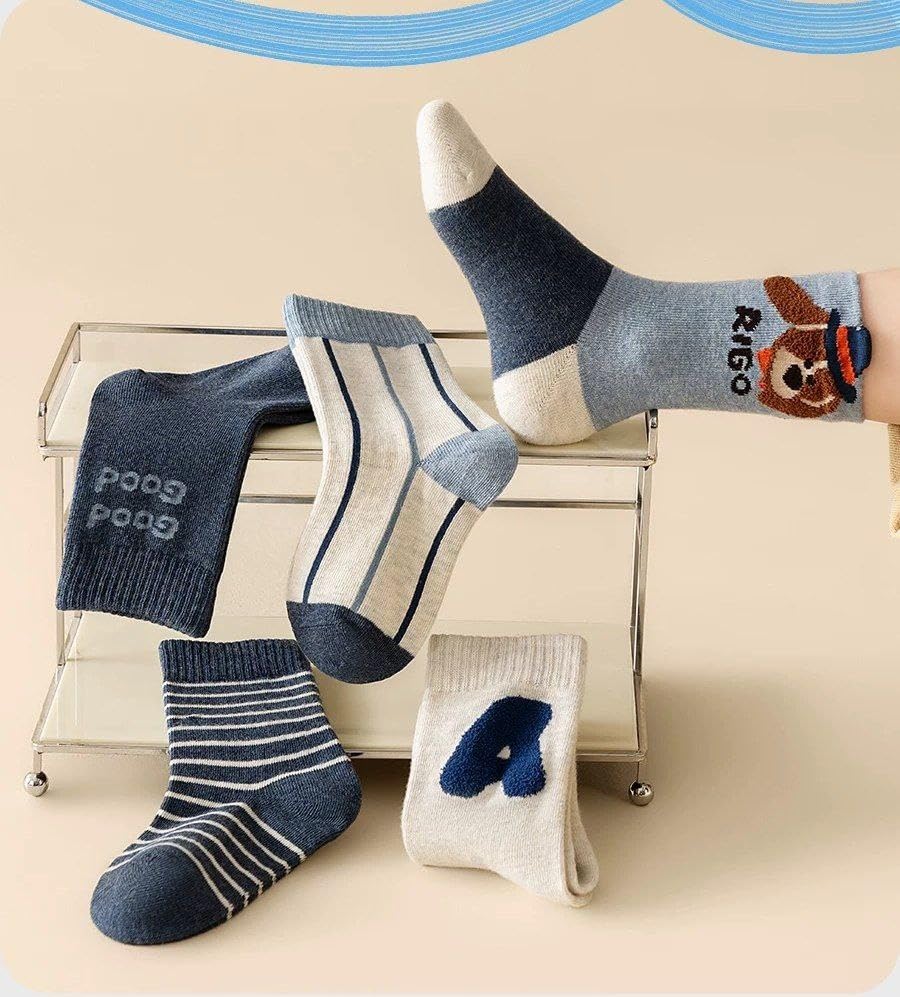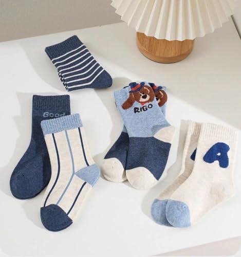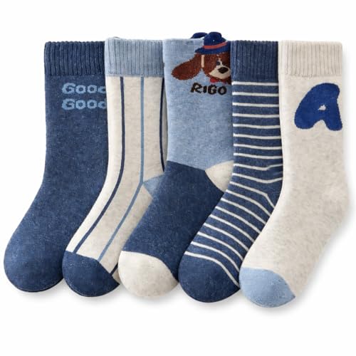 TRENDORA - Ultra Soft Fleece-Lined Winter Socks for Kids, 5 Pairs + 1 Gift Pair, Cotton Blend, Ankle-High, Thick Warm Plush Crew Socks for Boys & Girls, Ages 4-6,Gift