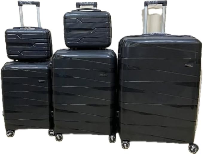 Generic - Unbreakable Luggage Trolley Bags Set with TSA Lock, Double Expandable Zipper, 4 Silent Spinner Wheels, 5 Pieces, Polypropylene (PP), Black