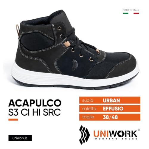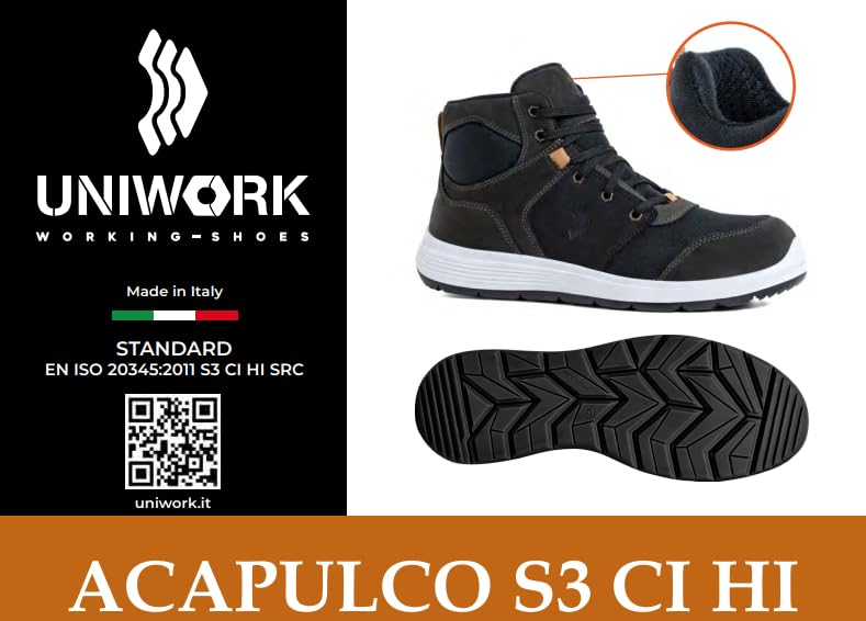Generic - Uni-Work® ACAPULCO S3 CI HI SRC Safety Work Boots, High-Top, Black (41)