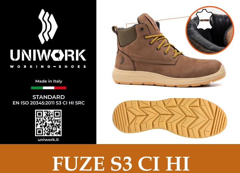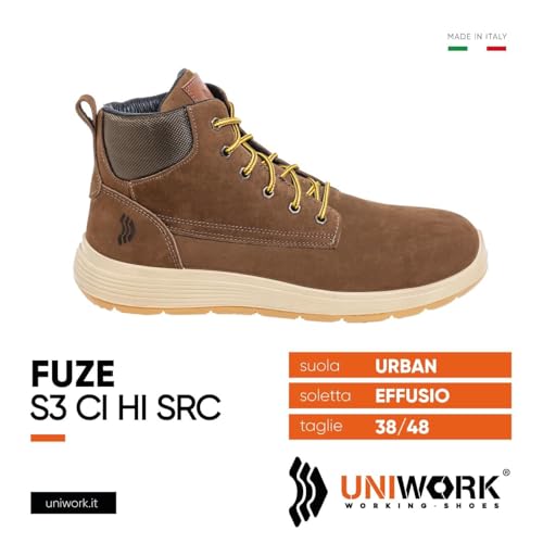 Generic - Uni-Work® FUZE S3 CI HI SRC Safety Work Boots, Brown, High-Top (47)