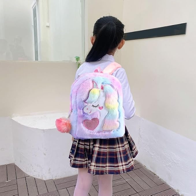 Generic - Unicorn Fur Backpack for Kids, Rainbow