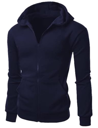 Generic - سويت شيرت سادة بيسيك كاجوال بغطاء للرأس واكمام طويلة للجنسين, كحلي, XL