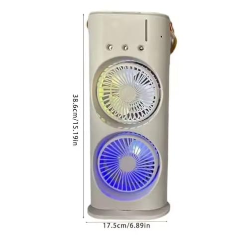 - The water tank can be filled with water and ice to produce cool air and cool water spray
