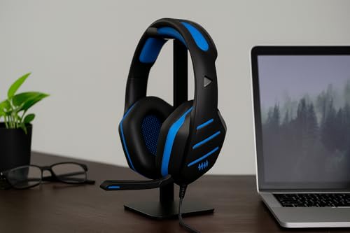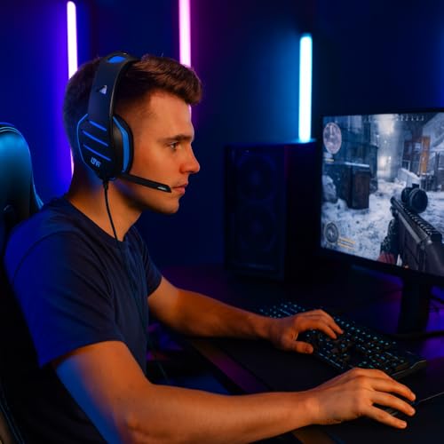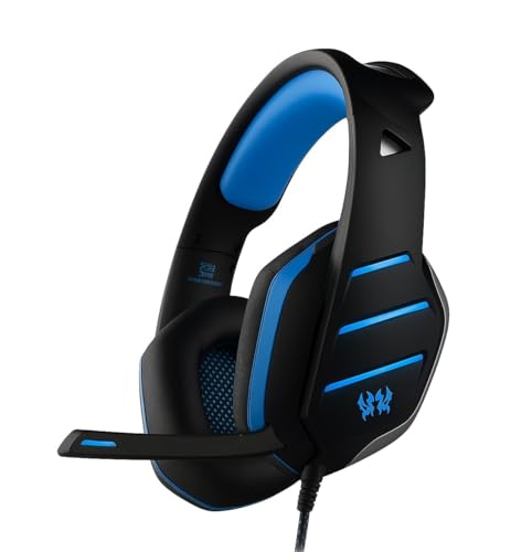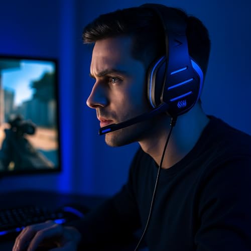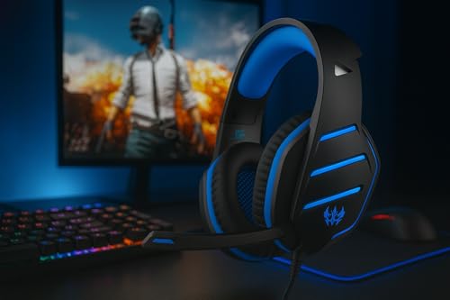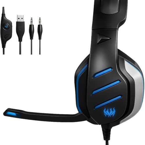 Generic - سماعة رأس للألعاب بسلك وإضاءة ليد مع ميكروفون مدمج متعدد الاتجاهات وعالي الحساسية وواجهة USB و3.5 ملم وكابل طول 2.1 م، موديل GS800، لون أزرق