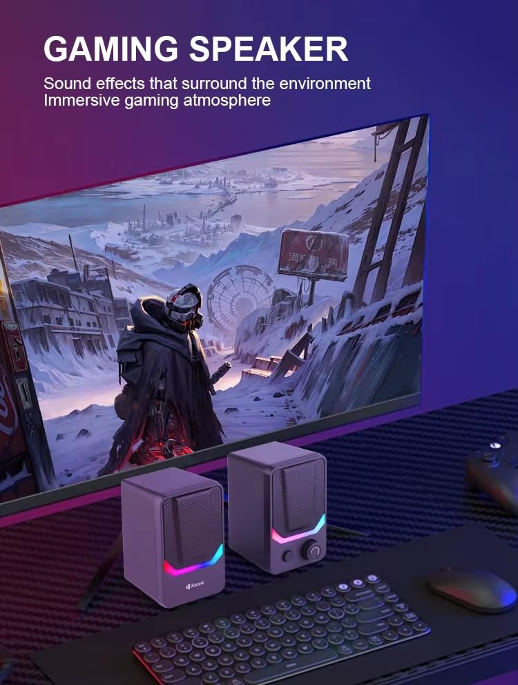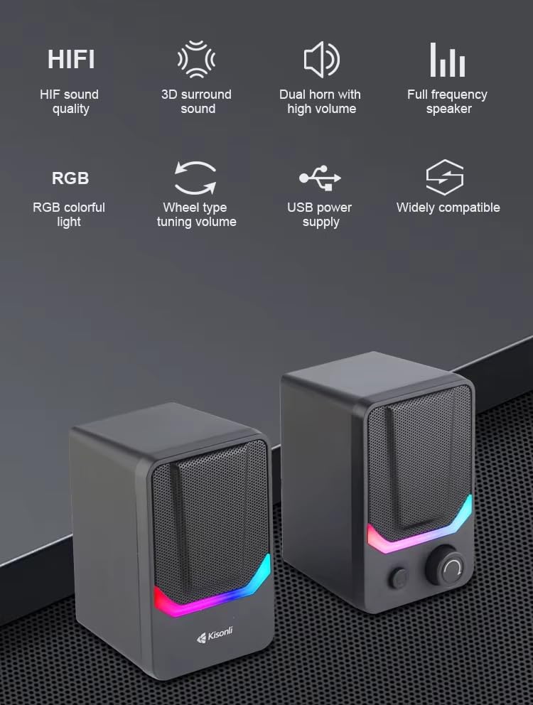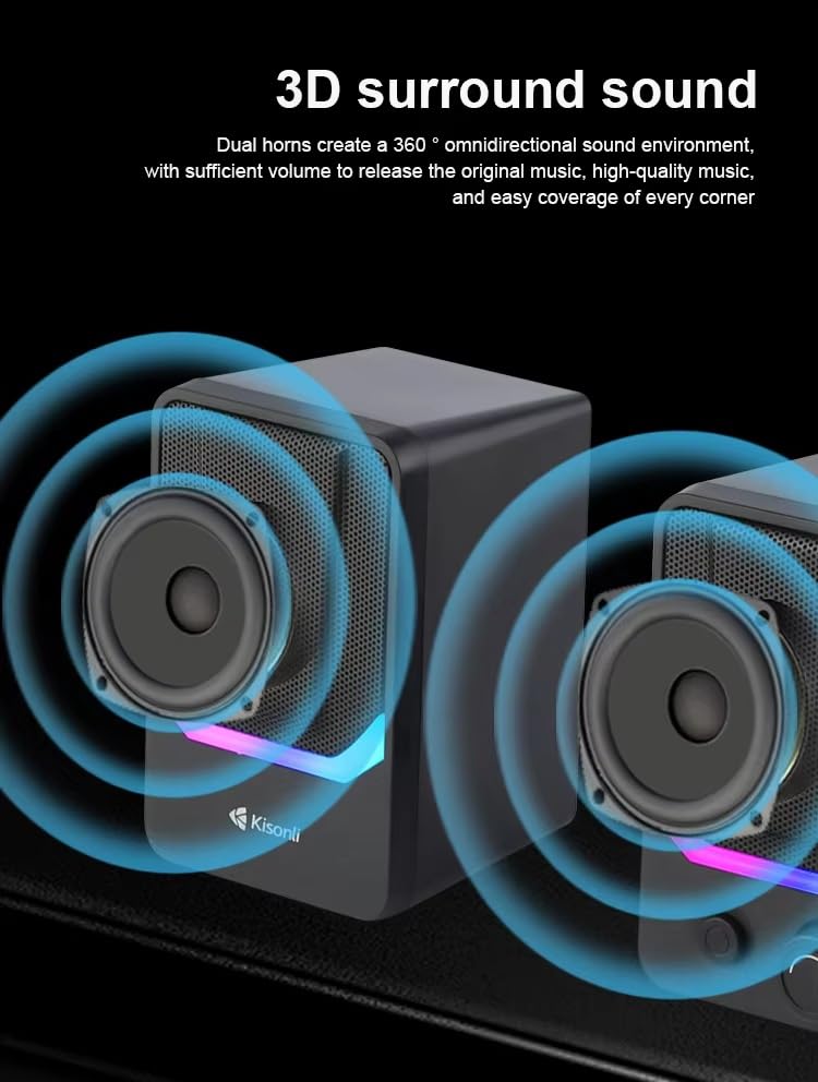 - سماعات كمبيوتر مكبرة للصوت ستيريو بقدرة 3W ×2 مع أقصى قدرة تصل إلى 3.5 وات لأداء قوي وصوت واضح.