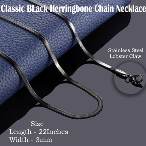 VAMA - VAMA Classic Stainless Steel Black Patta Chain Western Charm Neck Necklace Chains for Men & Boys (3mm)