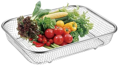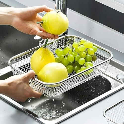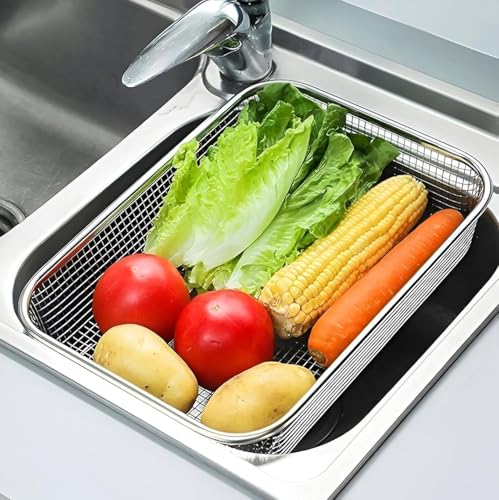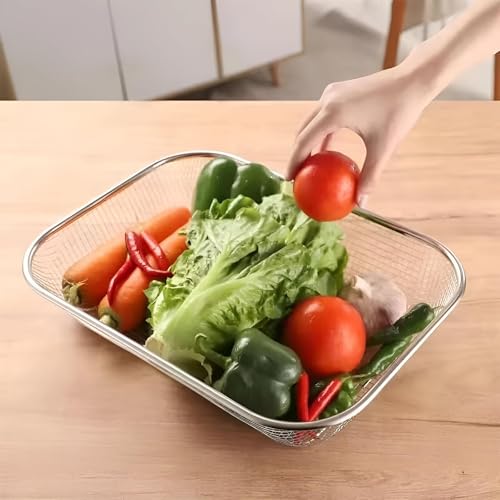 Generic - مصفاة خضروات وفواكه، صفاية من الفولاذ المقاوم للصدأ لغسيل الملابس والطهي والخضروات والفواكه والجمبري وحلقات البصل والبطاطس المقلية 37 × 27 × 9 سنتيمتر (1 قطعة)