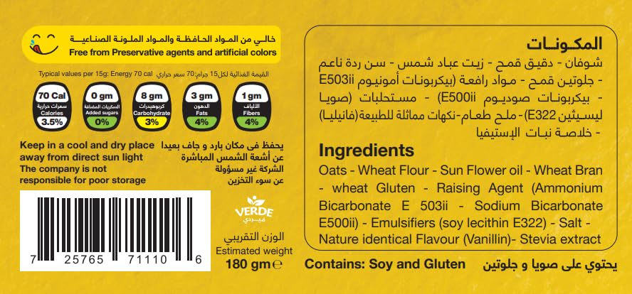 verde - Verde Digestive Biscuits Vanilla 180 GM