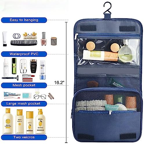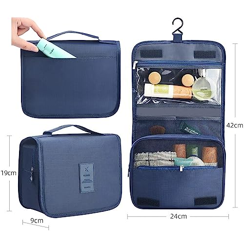 Veyarien - شنطة ادوات الزينة للسفر غسيل معلقة لمستحضرات التجميل شنط منظمة للنساء والفتيات والاطفال مقاومة للماء وقابلة للطي ازرق كحلي من فياريين نايلون