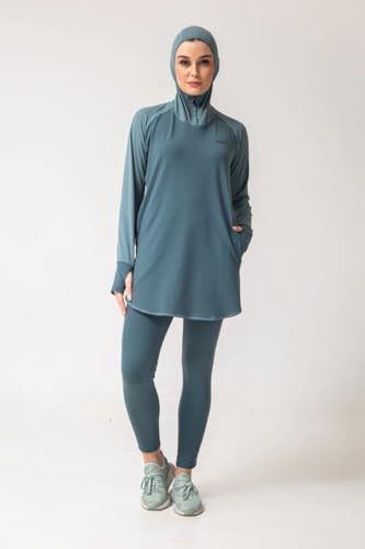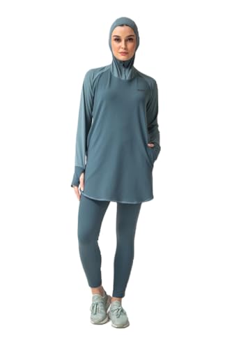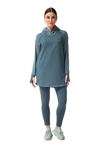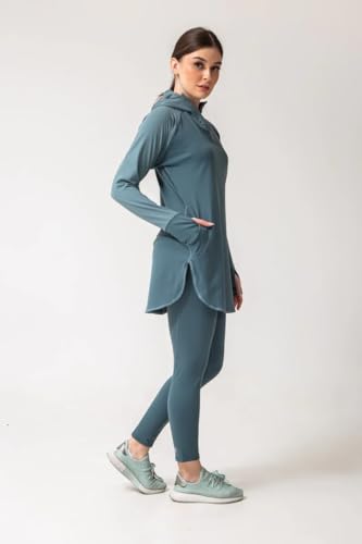 Generic - طقم رياضي نسائي من Vicino سويت شيرت طويل بغطاء رأس وثقب للإبهام، مع بنطلون بخصر مرتفع، مثالي للتمارين الرياضية – لون جنزارى