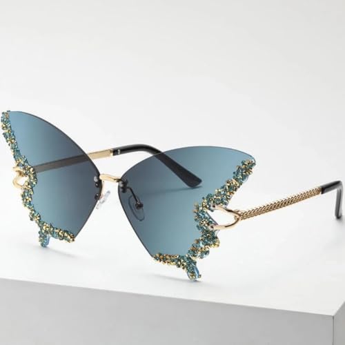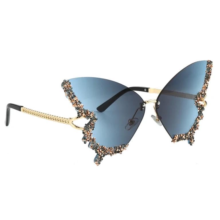 Generic - نظارات شمس بتصميم فراشة بدون إطار للنساء بتصميم ريترو مستوحى من السبعينيات مع حماية من الأشعة فوق البنفسجية، للمهرجانات الموسيقية والحفلات الريفية، اكسسوار فريد وأنيق