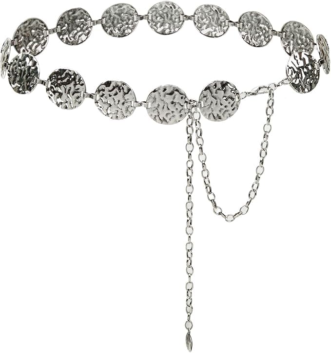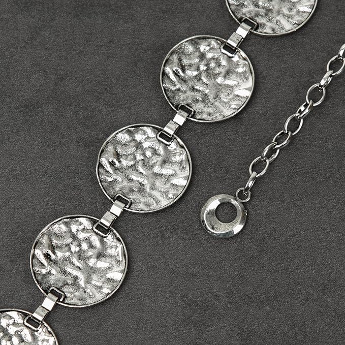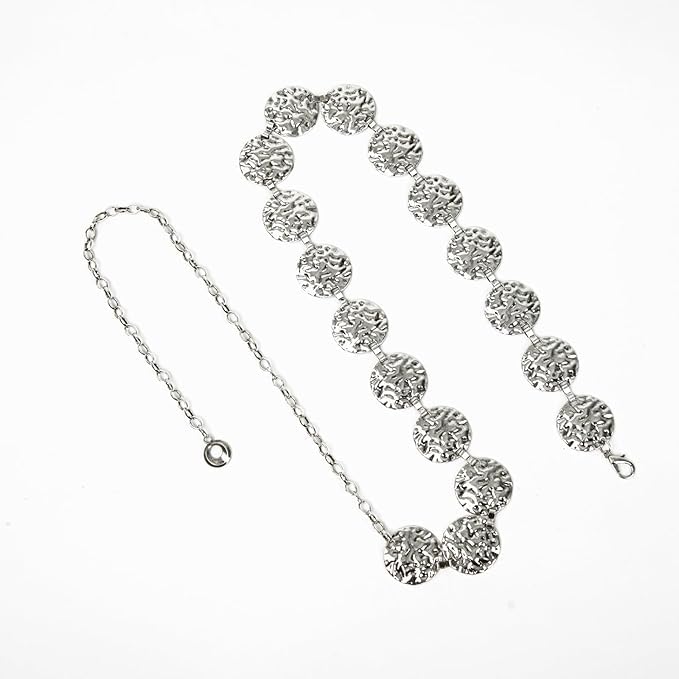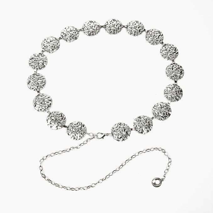 Generic - Vintage Style Chain Belt with Hammered Metal Discs, Silver Tone, Adjustable Length
