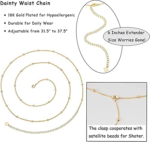 - It can highlight your perfect figure and make you more confident and charming in the crowd. Women's body jewelry can be adjusted between 31.5 inches and 37.5 inches. Please measure your waist circumference before buying. First, prepare a rope and wrap it around the waist. Then, make a mark for the first intersection. Next, measure the wires in inches. Finally, you can know whether our waist belly chain is suitable for you.