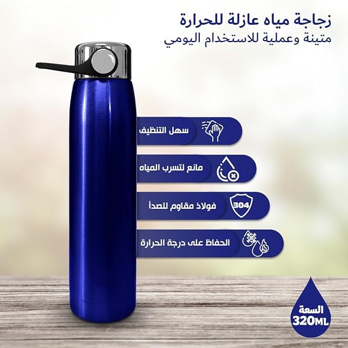 Generic - Water Bottle, Double Wall Leak-Proof, BPA Vacuum Insulated Free Stainless Steel Sports Water Bottle, Portable and Durable, Ideal for Active Lifestyle 320ml (Blue)